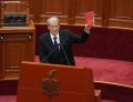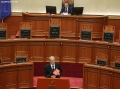 Kryetari i PD, Sali Berisha duke folur gjate nje seance parlamentare. Gjate seances, kane kaluar disa ndryshime per rendin e dites ndersa jane betuar 4 deputete dhe jane zgjedhur sekretaret e byrose se kuvendit.