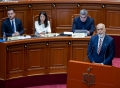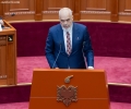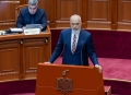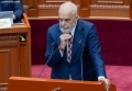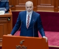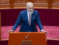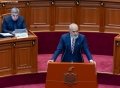 Kryeministri Edi Rama duke folur gjate nje seane parlamentare. Gjate seances, ka pasur debate mbi ministren AI Diella.