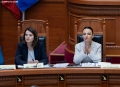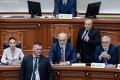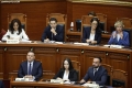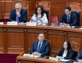Ministrat Toni Gogu, Elisa Spiropali, Petrit Malaj, Ervin Demo dhe Majlinda Dhuka gjate nje seance parlamentare. Gjate seances, ka pasur debate mbi ministren AI Diella.