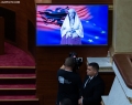 Momenti i fjalimit te Ministres AI Diella gjate nje seance parlamentare. Gjate seances, ka pasur debate mbi ministren AI Diella dhe menyren si ajo do te operoje.
