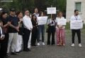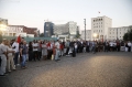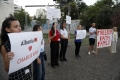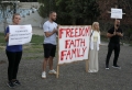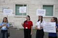 Qytatare duke mbajtur pankarta gjate nje ceremonie homazh ne nderim te aktivistit amerikan, Charlie Kirk, para universitetit te Arteve ne Tirane. Kirk nderroi jete pas nje atentati ne Utah.