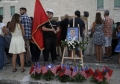 Klevis Balliu dhe Luciano Boci gjate nje ceremonie homazh ne nderim te aktivistit amerikan, Charlie Kirk, para universitetit te Arteve ne Tirane. Kirk nderroi jete pas nje atentati ne Utah.