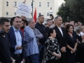 Klevis Balliu gjate nje ceremonie homazh ne nderim te aktivistit amerikan, Charlie Kirk, para universitetit te Arteve ne Tirane. Kirk nderroi jete pas nje atentati ne Utah.