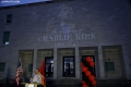 HOMAZHE PER CHARLIE KIRK NE TIRANE - Nje imazh i akvitistit amerikan Charlie Kirk projektohen ne fasaden e Universitetit te Arteve gjate ceremonise se homazheve te organizuara ne Tirane per te. Kirk nderroi jete pas nje atentati ne Utah.