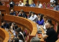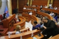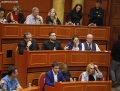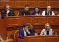 Anetaret e keshillit bashkiak gjate nje mbledhjeje te keshilit bashkiak te Tiranes, ku eshte votuar mbi shkarkimin e kryetarit se Bashkise se Tiranes, Erion Veliaj. Keshilli ka votuar me 50 vota pro shkarkimit te Veliajt, i cili qendron ne paraburgim qe brej dates 10 shkurt.