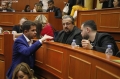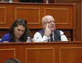 Kryetarja e Keshillit Bashkiak te Tiranes, Megi Fino dhe Sekretari i Keshillit Bashkiak te Tiranes, Behar Zeneli gjate nje mbledhjeje te keshilit bashkiak te Tiranes, ku eshte votuar mbi shkarkimin e kryetarit se Bashkise se Tiranes, Erion Veliaj. Keshilli ka votuar me 50 vota pro shkarkimit te Veliajt, i cili qendron ne paraburgim qe brej dates 10 shkurt.