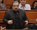 Valter Haliti gjate nje mbledhjeje te keshilit bashkiak te Tiranes, ku eshte votuar mbi shkarkimin e kryetarit se Bashkise se Tiranes, Erion Veliaj. Keshilli ka votuar me 50 vota pro shkarkimit te Veliajt, i cili qendron ne paraburgim qe brej dates 10 shkurt.