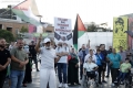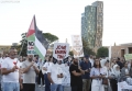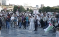 Qytetare me pankarta duke protestuar ne mbrojtje te popullit palestinez ne sheshin Skenderbej. Protesta eshte organizuar nga Forumi Mysliman i Shqiperise