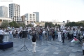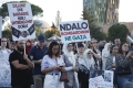 PROTESTE PER GAZEN NE TIRANE - Qytetare me pankarta duke protestuar ne mbrojtje te popullit palestinez ne sheshin Skenderbej. Protesta eshte organizuar nga Forumi Mysliman i Shqiperise