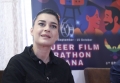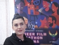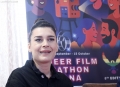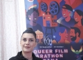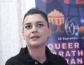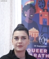 Zhaklin Lekatari gjate nje konference per shtyp per nisjen e Queer Film Marathon Tirana. Ky eshte edicioni i 6 i festivalit.