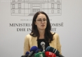 Ministrja e Ekonomise dhe Inovacionit, Delina Ibrahimaj duke folur gjate nje konference per shtyp. Gjate saj, Ibrahimaj foli mbi rritjen ekonomike te Shqiperise dhe drejtimet kryesore te politikave te reja.