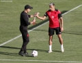 Trajneri Sylvinho and Lojtari e kombetares shqiptare te futbollit, Myrto Uzuni gjate nje seance stervitore ne ambientet e stadiumit Arena Kombetare ne Tirane, para ndeshjes me kombetaren e Serbise, ne kuader te kualifikuesve per boterorin 2026.