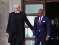 KRYETARI I BASHKISE NEW YORK NE TIRANE - Kryeministri Edi Rama dhe kryetari i bashkise New York, Eric Adams duke dale nga ambientet e kryeministrise ne Tirane. Adams ka arritur ne Tirane per nje vizite 4 ditore.