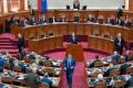SEANCE PARLAMENTARE - Deputeti Gazment Bardhi duke folur gjate nje seance parlamentare. Gjate seances ka pasur debate mbi perfshirjen e emrit te Enver Hoxhes ne nje material te parlamentit, mbi personat e lindur ne tetor.