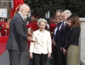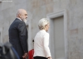 Kryeministri Edi Rama dhe Presidentja e Komisionit Evropian, Ursula Von Der Leyen para nje ceremonie pritjeje ne ambientet e kryeministrise, ku pritet te mbahet dhe nje konference e perbashket. Von Der Leyen viziton TiraneN per te marre pjese ne Forumin e Investimeve BE-Ballkani Perendimor, qe do te mbahet ne ambientet e Pallatit e kongreseve.