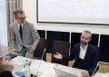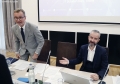 Kreu i delegacionit te BE ne Tirane ambasadori, Silvio Gonzato, Komisioneri Shteteror i Zgjedhjeve, Ilirjan Celibashi duke folur gjate nje konference mbi zgjedhjet e ardhshme vendore te dates 9 nentor. Gjate saj u konfirmua perdorimi i inteligjences artificiale.