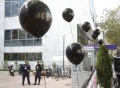 Citizens with black balloons during a protest in front of the Ministry of Health over the lack of medicines at the Oncology Department, where cancer patients are treated.