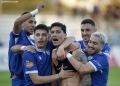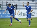 FUTBOLL TEUTA FLAMURTARI - Lojtaret e Teutes festojne shenimin e nje goli gjate ndeshjes se futbollit Teuta - Flamurtari, 3-2, e vlefshme per Kategorine Superiore, e luajtur ne stadiumin Niko Dovana ne Durres.