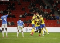 Lojtaret e Elbasanit festojne shenimin e nje goli gjate ndeshjes se futbollit Tirana - Elbasani, 1-4, e vlefshme per Kategorine Superiore, e luajtur ne stadiumin Air Albania ne Tirane.
