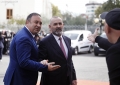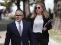 Kryetarja e Keshillit te Late te Prokurorise, Mirela Bogdani dhe Kryetari i KLGJ, Ilir Rusi duke hyre ne ambientet e parlamentit per nje seance. Seanca eshte mbajtur pasi eshte betuar deputetja e re Briseida Cakerri dhe eshte rrezuar kerkesa per te shkarkuar kryetarin e parlamentit, Niko Peleshi.