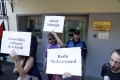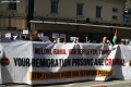 Protestues me banderola dhe pankarta gjate nje proteste para ambasades se Italise ne Tirane. Ne protesten qe kane marre te rinj shqiptare dhe te huaj jane shprehur kunder kampit ne Gjader dhe trajtimit te refugjateve.