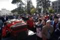 Xhoana Nano, Kryeministri Edi Rama dhe Linda Rama ndersa roje zyrtare te Gardes Se Republikes behen gati per ceremonine e percjelljes ne bulevardin Deshmoret e Kombit, pas homazheve per ish kryeministrin Fatos Nano ne Pallatin e Kongresve. Ish kryeministri dhe kryetari i partise socialiste nderroi jete ne moshen 73 vjecare, pas nje beteje me semundje polmonare.