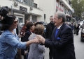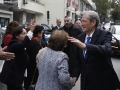 Kryetari i Partise Demokratike, Sali Berisha duke pershendetur mbeshtetesit para se te hyje ne ambientet e SPAK. Pas paraqitjes ne SPAK, Berisha ka sulmuar kreun i institucionit, Altin Dumanin.