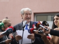 Kryetari i Partise Demokratike, Sali Berisha duke folur per gazetaret pas daljes nga ambientet e SPAK. Pas paraqitjes ne SPAK, Berisha ka sulmuar kreun i institucionit, Altin Dumanin.
