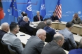Kryetari i partise demokratike, Sali Berisha dhe deputetet Gazment Bardhi dhe Flamur Noka gjate nje takimi te grupit parlamentar te PD ne ambientet e selise se partise. Gjate saj u fol rreth aksionit opozitar dhe mbi problemet me te medha te vendit, si shpopullimi.