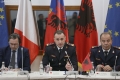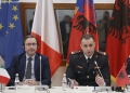 KONFERENCE E POLICISE PER LUFTEN KUNDER KANABISIT - Drejtori i pergjithshem i policise se shtetit, Ilir Proda dhe ambasadori i Italise ne Tirane, Marco Alberti duke folur gjate nje konference te perbashket shtypi midis perfaqesuesve te policise se shtetit dhe policise Italiane. Gjate konferences u diskutua rreth aksioneve te perbashketa ne kuader te luftes kunder kanabisit.
