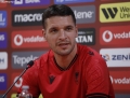 Lojtari i kombetares shqiptare te futbollit, Berat Gjimshiti gjate nje konference per shtyp para ndeshjes me kombetaren e Anglise, ne kuader te kualifikuesve per boterorin 2026.