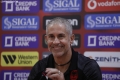 Trajneri i kombetares shqiptare te futbollit, Sylvinho gjate nje konference per shtyp para ndeshjes me kombetaren e Anglise, ne kuader te kualifikuesve per boterorin 2026.