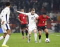 Krisjtan Asllani i Shqiperise dhe Jude Bellingham i Anglise gjate ndeshjes se futbollit, Shqiperi-Angli, 0-2, e vlefshme per fazen e grupeve te kualifikueseve per Boterorin 2026 e luajtur ne stadiumin Arena Kombetare ne Tirane. Shqiperia eshte kualifikuar matematikisht ne fazen playoff te kualifikueseve per Boterorin 2026, ndersa Anglia ka zene vendin e pare.
