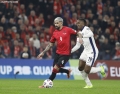 Myrto Uzuni i Shqiperise dhe Jarrod Bowen i Anglise gjate ndeshjes se futbollit, Shqiperi-Angli, 0-2, e vlefshme per fazen e grupeve te kualifikueseve per Boterorin 2026 e luajtur ne stadiumin Arena Kombetare ne Tirane. Shqiperia eshte kualifikuar matematikisht ne fazen playoff te kualifikueseve per Boterorin 2026, ndersa Anglia ka zene vendin e pare.