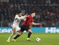 Naser Aliji i Shqiperise dhe Harry Kane i Anglise gjate ndeshjes se futbollit, Shqiperi-Angli, 0-2, e vlefshme per fazen e grupeve te kualifikueseve per Boterorin 2026 e luajtur ne stadiumin Arena Kombetare ne Tirane. Shqiperia eshte kualifikuar matematikisht ne fazen playoff te kualifikueseve per Boterorin 2026, ndersa Anglia ka zene vendin e pare.