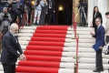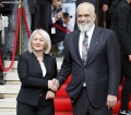 Kryeministri Edi Rama dhe Komisionerja Evropian per Fqinjesine dhe Zgjerimin, Marta Kos gjate ceremonise se pritjes ne shkallet e Pallatit te Brigadave ne Tirane, para samitit rajonal Rruga jone drejt BE. Ne samit kane marre pjese perfaqesuesit e shteteve te Ballkanit Perendimor, per te diskutuar planin e rritjes se BE per kete rajon dhe rrugetimin e shteteve drejt BE.