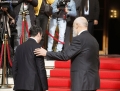 Kryeministri Edi Rama dhe Kreu i delegacionit te BE ne Tirane ambasadori, Silvio Gonzato gjate ceremonise se pritjes ne shkallet e Pallatit te Brigadave ne Tirane, para samitit rajonal Rruga jone drejt BE. Ne samit kane marre pjese perfaqesuesit e shteteve te Ballkanit Perendimor, per te diskutuar planin e rritjes se BE per kete rajon dhe rrugetimin e shteteve drejt BE.