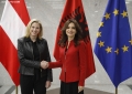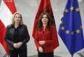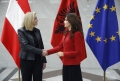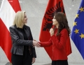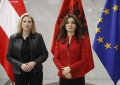 Ministrja per Evropen dhe Punet e Jashtme, Elisa Spiropali dhe Ministrja e Jashtme e Austrise, Beate Meinl-Reisinger ne momentin e pritjes zyrtare. Gjate vizites, Spiropali dhe Meinl-Reisinger kane folur mbi anetaresimin e Shqiperise ne BE.