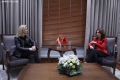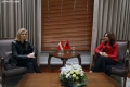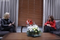 SPIROPALI TAKON MINISTREN E JASHTME AUSTRIAKE - Ministrja per Evropen dhe Punet e Jashtme, Elisa Spiropali dhe Ministrja e Jashtme e Austrise, Beate Meinl-Reisinger ne momentin e pritjes zyrtare. Gjate vizites, Spiropali dhe Meinl-Reisinger kane folur mbi anetaresimin e Shqiperise ne BE.