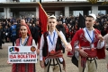 Children and citizens in traditional clothing during the flag raising ceremony on November 28, Independence Day. This year marks the 113th anniversary of Albania's independence.