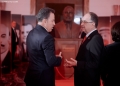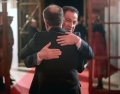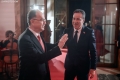 Ministri i brendshem, Besfort Lamallari dhe Ministri i mjedisit, Sofjan Jaupaj gjate pritjes se organizuar nga Presidenti ne Pallatin e Brigadave me rastin e Festes se pavaresise se Shqiperise, 28 nentor. Kete vit kremtohet 113 vjetori i pavaresise se Shqiperise.