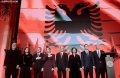Kryeministri Edi Rama, bashkeshortja e tij, Linda Rama, Presidentja Kosovar, Vjosa Osmani, Presidenti Bajram Begaj dhe bashkeshortja Amarda dhe kryetari i parlamentit, Niko Peleshi ne momentin e himnit, gjate pritjes se organizuar nga Presidenti ne Pallatin e Brigadave me rastin e Festes se pavaresise se Shqiperise, 28 nentor. Kete vit kremtohet 113 vjetori i pavaresise se Shqiperise.
