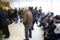 PENSIONISTET MARRIN SHPERBLIMIN - Nje pensionist duke marre shperblimin ndersa te tjere presin ne radhe ne nje pike te Postes Shqiptare ne Tirane gjate paradites te te martes, 2 dhjetor. Keshilli i ministrave vendosi te jape shperblim financiar per pensionistet per festat e vitit te ri.