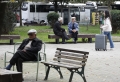 PENSINISTE GJATE PASDITES - Nje vajze shtyn valixhen ndersa disa pensioniste qendrojne ulur ne nje park ne Tirane, gjate pasdites se 2 Dhjetorit. Shume pensioniste jane drejtuar drejt pikave te postes shqiptare per te terhequr shperblimin e fundvitit. Keshilli i ministrave vendosi te jape shperblim financiar per pensionistet per festat e vitit te ri.