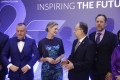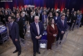 25 VJETORI I DHOMES AMERIKANE TE TREGTISE - Presidenti Bajram Begaj, Presidenti i Dhomes Amerikane te Tregtise, Grant Van Cleve dhe E Ngarkuara me Pune e Shteteve te Bashkuara te Amerikes ne Shqiperi, Nancy VanHorn gjate nje ceremonie te organizuar me rastin e 25 vjetorit te Dhomes Amerikane te Tregtise. Gjate ceremonise u fol rreth rolit te dhomes ne ekonomine shqiptare.