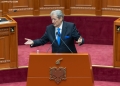 Deputeti Tedi Blushi duke folur gjate nje seance parlamentare. Gjate saj jane disktuar problematikat e zgjedhesve.