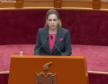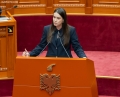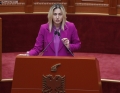 Deputetja Olta Xhacka duke folur gjate nje seance parlamentare. Gjate saj jane disktuar problematikat e zgjedhesve.