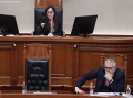 Ministri i shtetit per marredheniet me parlamentin, Toni Gogu dhe kryeterja e parlamentit, Klodiana Spahiu duke folur gjate nje seance parlamentare. Gjate saj jane disktuar problematikat e zgjedhesve.