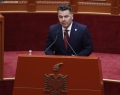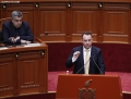 Deputeti Klevis Balliu duke folur gjate nje seance parlamentare. Gjate saj jane disktuar problematikat e zgjedhesve.