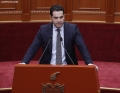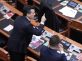 Deputeti Ervin Hoxha duke folur gjate nje seance parlamentare. Gjate saj jane disktuar problematikat e zgjedhesve.